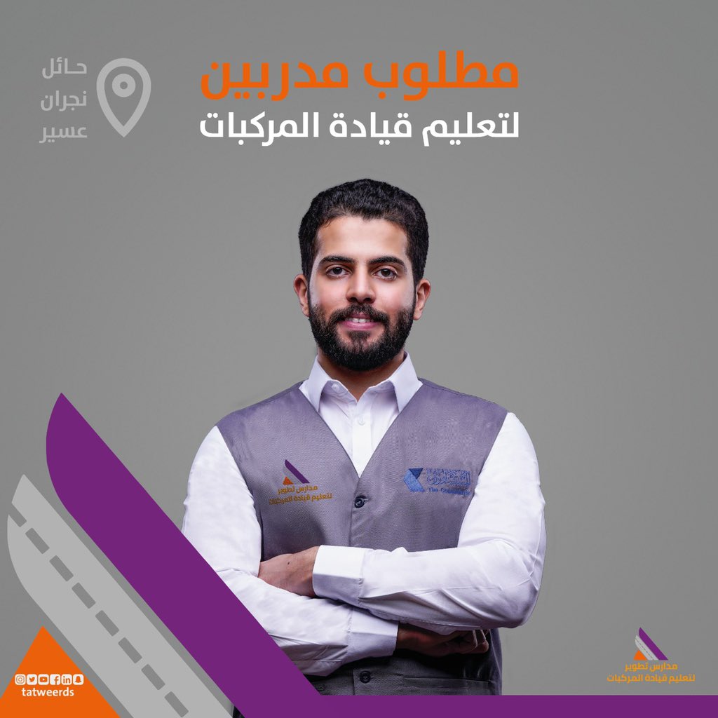 فرصة وظيفية قامت مدارس تطوير لتعليم قيادة المركبات بالاعلان عنها للرجال في حائل و نجران و عسير و ذلك حسب التفاصيل والمسميات الموضحه في الاسفل