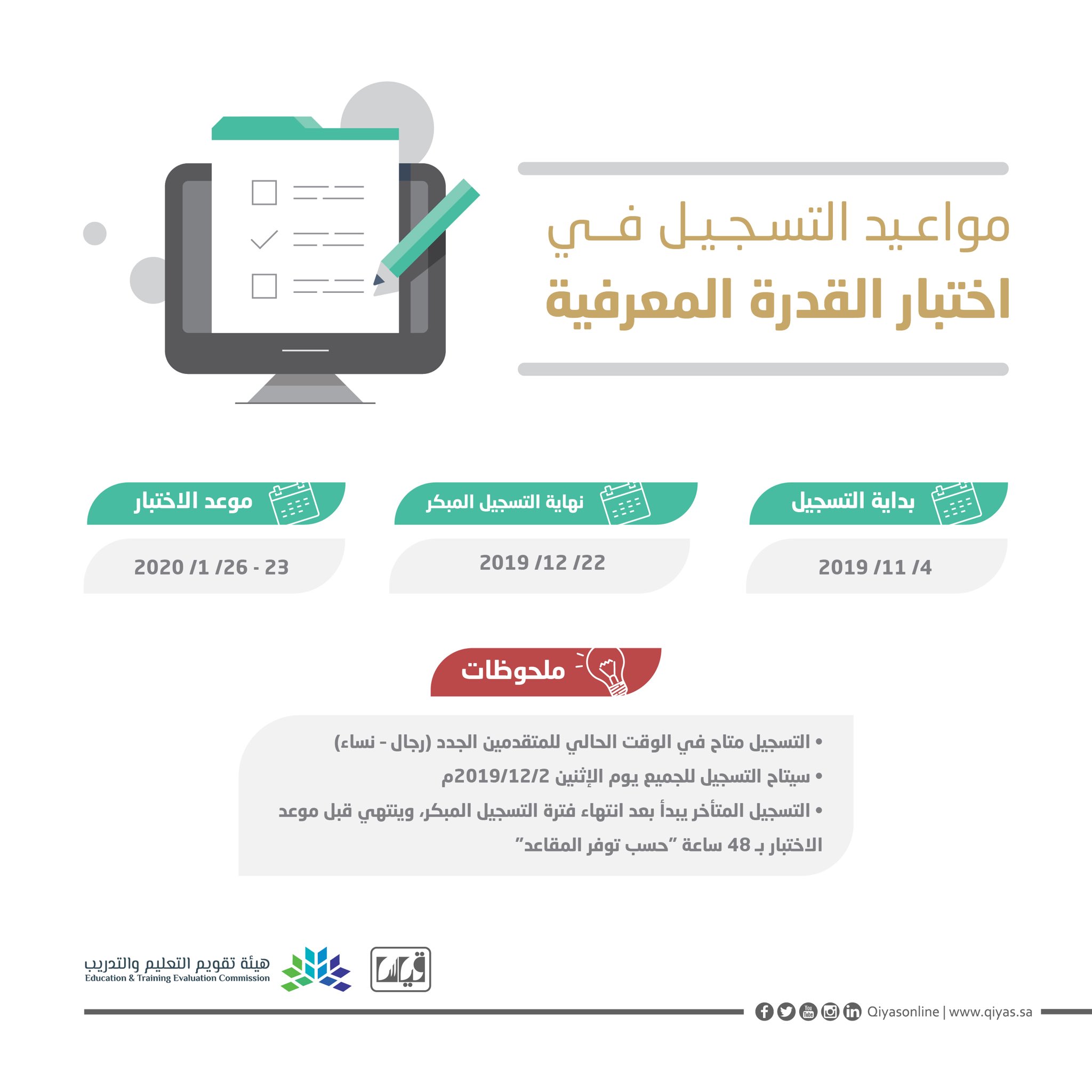 تنبيه: التسجيل الان متاح في اختبار ⁧‫القدرة المعرفية‬⁩ عبر موقع ⁧‫ قياس‬⁩ التابع لهيئة تقويم التعليم والتدريب.